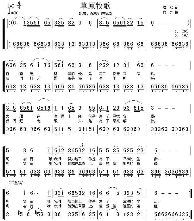 草原牧歌(《草原上的人们》插曲、二声部)[简谱]