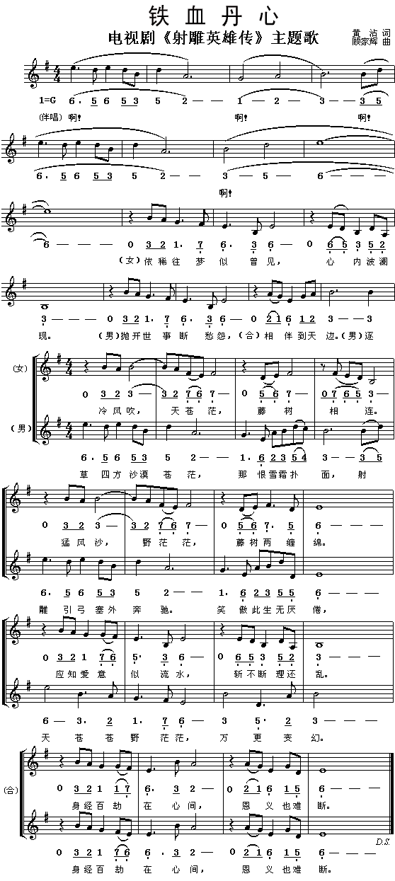 铁血丹心(《射雕英雄传》主题歌)[简谱]