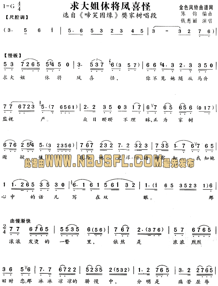 求大姐休将凤喜怪(《啼笑姻缘》唱段)