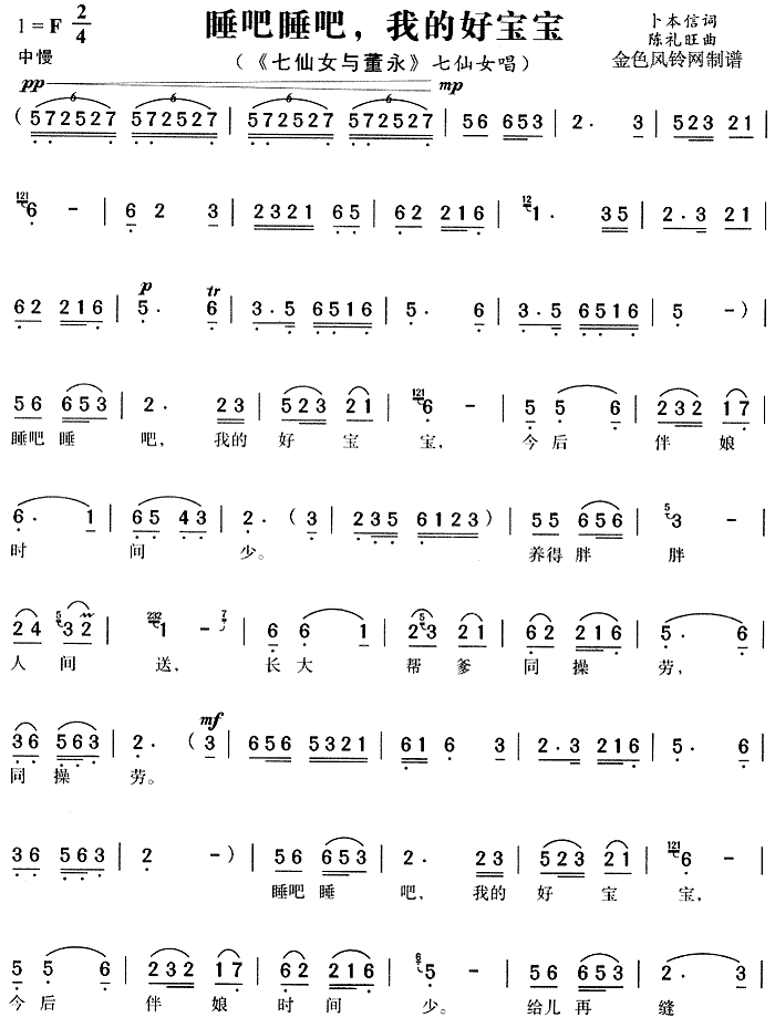 睡吧睡吧我的好宝宝《七仙女与董永》[戏曲曲谱]