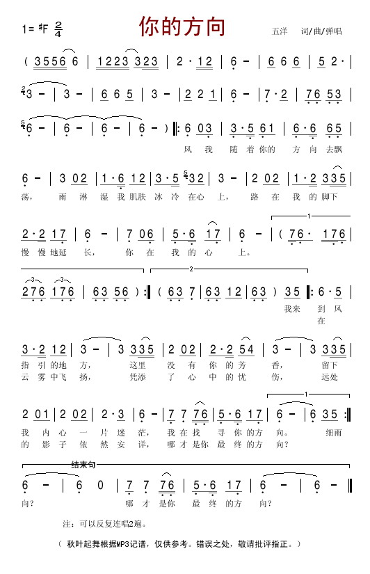 四字歌谱简谱