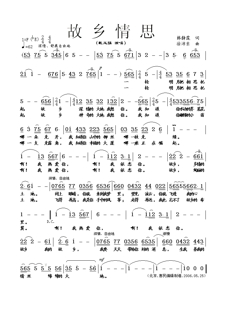 四字歌谱简谱