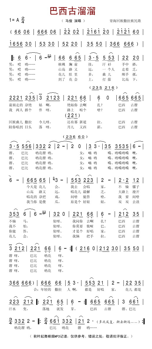 五字歌谱简谱