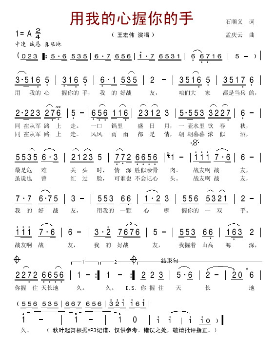 用我的心握你的手
