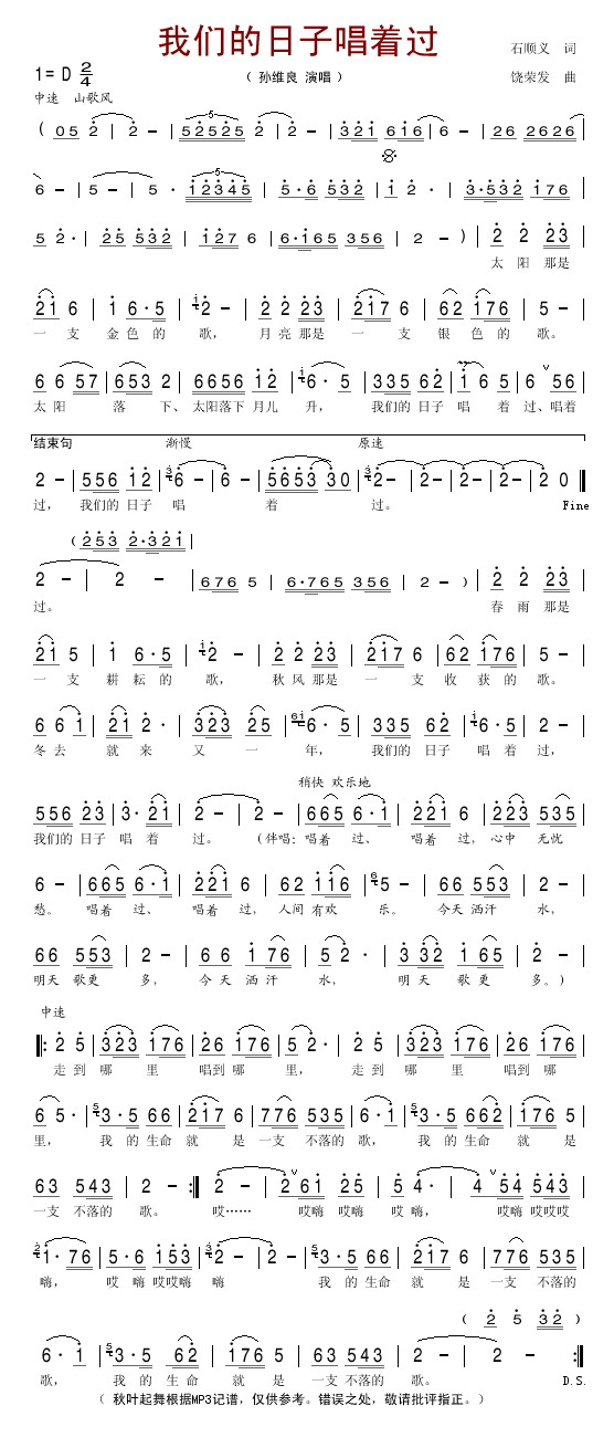 我们的日子唱着过