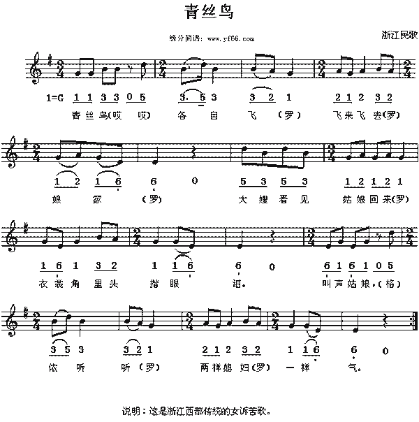 青丝鸟 浙江民歌
