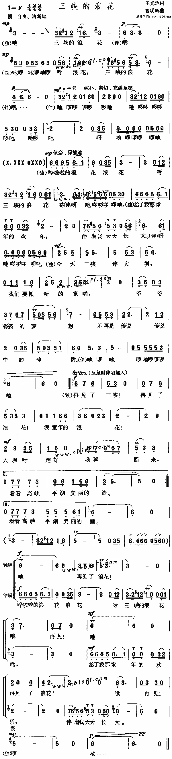 三峡的浪花 儿童歌曲