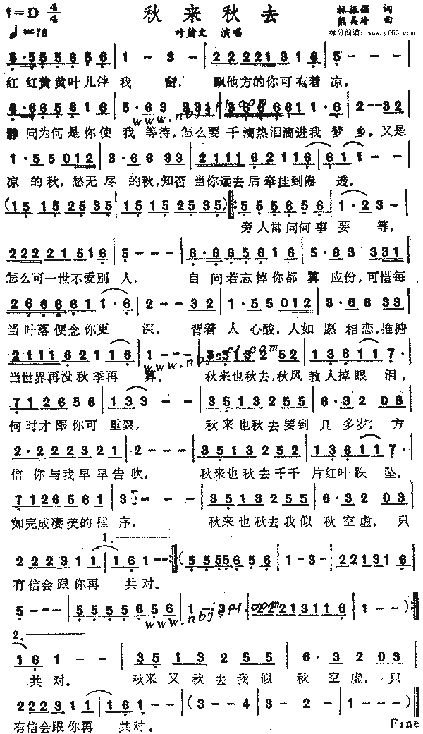 秋去秋来 红红黄黄蝶儿伴我窗 飘他方的你可有着凉 静问为何是你使我等待 怎么要千滴热泪滴进我梦乡 又是凉的秋秋无尽的秋 知否当你远去后牵挂到倦透 旁人常问何事要等 怎么可一世不爱别人 自问或忘掉你都算应份 可惜每当叶落便念你更深 背着人心酸人如愿相恋 推搪当世界再没秋季再算 秋来也秋去秋风叫人掉眼泪 何时才跟你可重聚 秋来也秋去要到几多岁 方信你与我早早告吹 秋来也秋去千千片红叶跌坠 如完成凄美的程序 秋来也秋去我似秋空虚 只有信会跟你再共对 旁人常问何事要等 怎么可一世不爱别人 自问或忘掉你都算应份 可惜每当叶落便念你更深 背着人心酸人如愿相恋 推搪当世界再没秋季再算 秋来也秋去秋风叫人掉眼泪 何时才跟你可重聚 秋来也秋去要到几多岁 方信你与我早早告吹 秋来也秋去千千片红叶跌坠 如完成凄美的程序 秋来也秋去我似秋空虚 只有信会跟你再共对 秋来也秋去我似秋空虚 只有信会跟你再共对 |