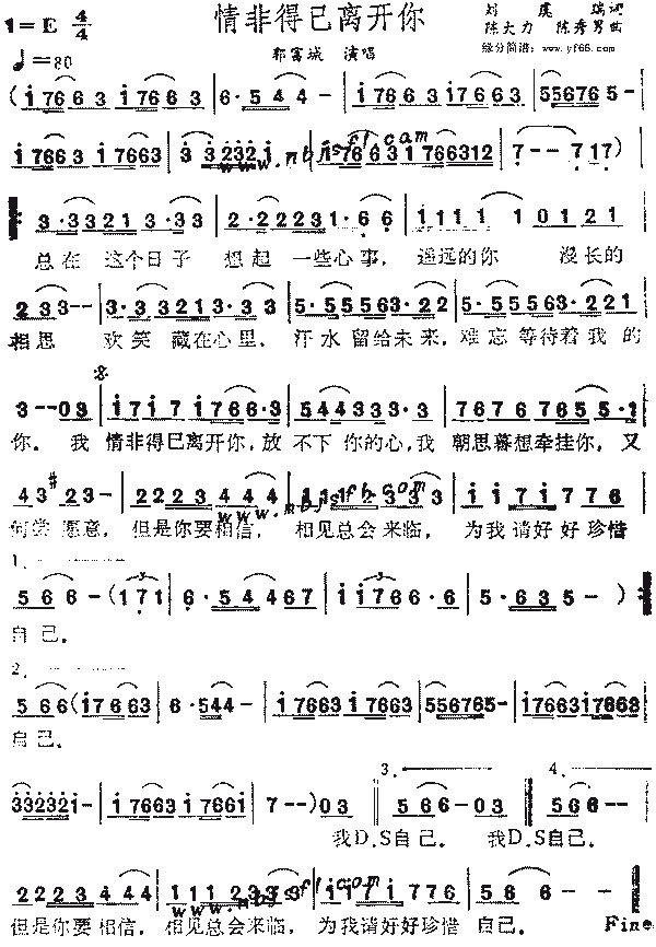 情非得已离开你 郭富城 词:刘虞瑞曲:陈大力 陈秀男编: ricky ho mon amour, je reviendrais, souviens toi, je t'aime pour toujours, 总在这个日子 想起一些心事 遥远的你万长的相思 欢笑藏在心里 汗水留给未来 难忘等待着我的你 我情非得已离开你 放不下你的心 我朝思暮想牵挂你 又何尝愿意 但是你要相信 相见总会来临 为我请好好珍惜自己 bien que nous avons plusieurs problemes, s'il te plait aide moi, et crois en notre amour. |