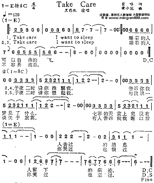 take care i want to sleep take care i want to sleep 睡着的人可以自由的飞 take care i want to sleep take care i want to sleep 睡着的人不容易流泪 了夜二时请你推醒我 告诉你我梦见了什么 七彩的天堂上竟没有 人去过的消息人留下的痕迹 take care i want to sleep take care i want to sleep 睡着的人不容易流泪 子夜二时请你想起我 与我谈一谈关于寂寞 有人告诉我我睡着以后 你哭过也恨过 你笑过也忘过 |