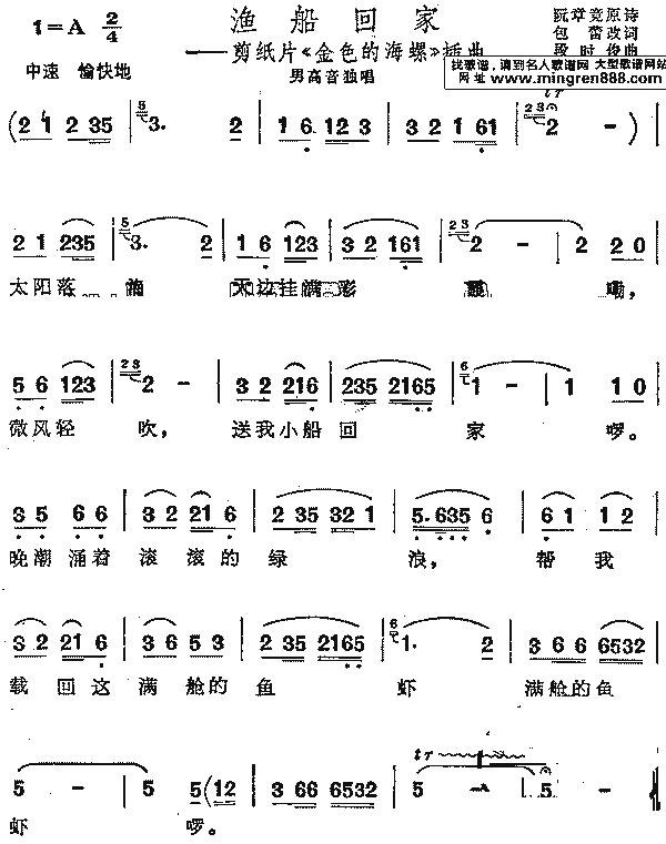 渔船回家 男声独唱