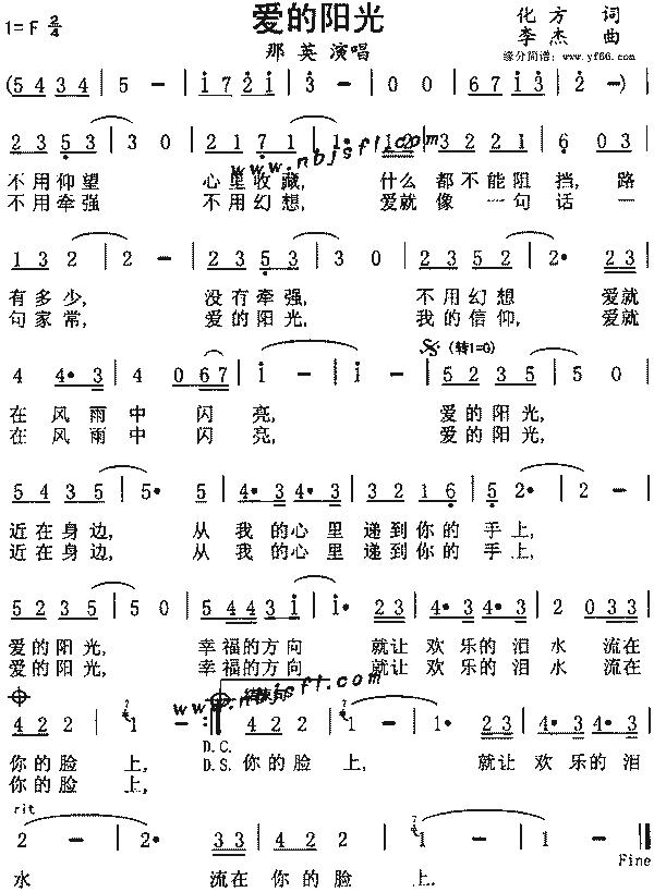 作词:化方 作曲:李杰 不用仰望,心里收藏 什么都不能阻挡路有多长 没有牵强,不用幻想 爱就在风雨中闪亮 爱的阳光,近在身旁 从我的心里递到你的手上 爱的阳光,幸福的方向 就让欢乐的泪水流在你的脸上 不用牵强,不用幻想 爱就像一句话一句家常 爱的阳光,我的信仰 爱就在风雨中闪亮 爱的阳光,近在身旁 从我的心里递到你的手上 爱的阳光,幸福的方向 就让欢乐的泪水流在你的脸上 爱的阳光,近在身旁 从我的心里递到你的手上 爱的阳光,幸福的方向 就让欢乐的泪水流在你的脸上 就让欢乐的泪水流在你的脸上 |