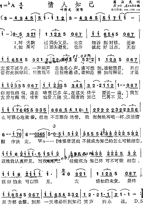 曲:ryo asuka 词:潘源良 时光飘过回头又见 长夜细诉别时情 还幸友情不减半点 一声两声总也是心声 谁可想到谁能预算 其实你对我痴情 藏在暗里已多年 在这一天终于要说一遍 我怎么可狠心地欺骗 但也不忍跟你绝情 我匆匆地再喝一杯 没法清醒作决定 woo 难怪曾说出不能成为知己的 怎么可能相恋 这晚我认真听见 而我和你已经能成为知己 终可不可能相恋 我却怕未可以预见 如果可以回头避免 也许彼此好过点 无奈看你此刻眼睛 仿佛我不应拒绝邀请 谁知应要如何辨证 才是友爱与痴情 唯害怕爱火烧完 现有的知己已再不见 友情如仍未变 最终双方都会醒 到那一天将必听到 知己笑声到永远 |