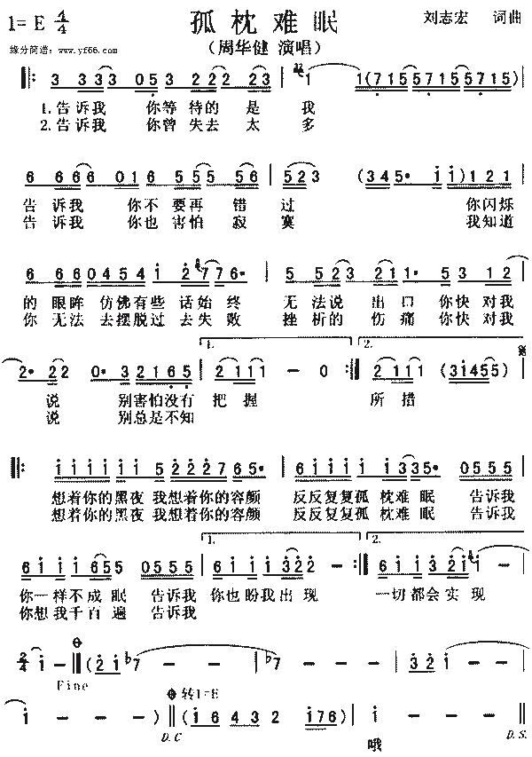 孤枕难眠周华健 告诉我你等待的是我 告诉我你不要再错过 你闪烁的眼眸 仿佛有些话始终 无法说出口 你快对我说 别害怕没有把握 告诉我你曾失去太多 告诉我你也害怕寂寞 我知道你无法 去摆脱过去失败 挫折的伤痛 你快对我说 别总是不知所措 想着你的黑夜 我想着你的容颜 反反复复孤枕难眠 告诉我你一样不成眠 告诉我你也盼我出现 想着你的黑夜 我想着你的容颜 反反复复孤枕难眠 告诉我你想我千百遍 告诉我一切都会实现 告诉我你曾失去太多 告诉我你也害怕寂寞 我知道你无法 去摆脱过去失败 挫折的伤痛 你快对我说 别总是不知所措 我想着你的黑夜 我想着你的容颜 反反复复孤枕难眠 告诉我你一样不成眠 告诉我你也盼我出现 想着你的黑夜 我想着你的容颜 反反复复孤枕难眠 告诉我你想我千百遍 告诉我一切都会实现 我想着你的黑夜 我想着你的容颜 反反复复孤枕难眠 告诉我你一样不成眠 告诉我你也盼我出现 想着你的黑夜 我想着你的容颜 反反复复孤枕难眠 告诉我你想我千百遍 告诉我一切都会实现 |