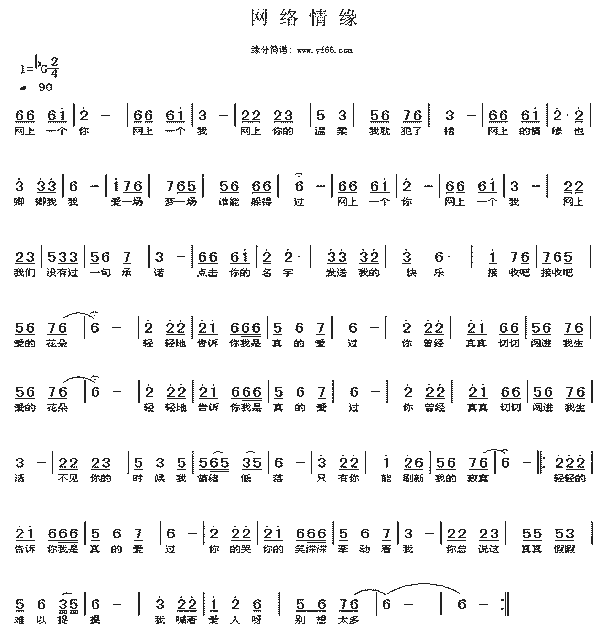 网络情缘 演唱:侃侃 编制:周晓敏 网上一个你 网上一个我 网上你的温柔我就犯了错 网上情缘 也轻轻的问我 爱一场梦一场 谁能躲得过 网上一个你 网上一个我 网上我们没有过一句承诺 点击你的名字 发送我的快乐 接收吧接收吧爱的花朵 轻轻的告诉你我是真的爱过 你曾经真真切切闯进我生活 不见你的时候 我情绪低落 只有你能刷新我的寂寞 轻轻的告诉你我是真的爱过 你的哭你的笑深深牵动着我 你总说这真真假假难以捉摸 我喊着爱人呀 别想太多 轻轻的告诉你我是真的爱过 你的哭你的笑深深牵动着我 你总说这真真假假难以捉摸 我喊着爱人呀 别想太多 |