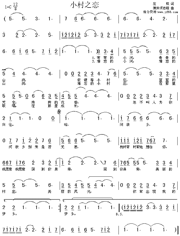 庄奴词薄井须志程曲 邓丽君演唱 弯弯的小河 青青的山冈 依偎着小村庄 蓝蓝的天空 阵阵的花香 怎不叫人为你向往 啊问故乡 问故乡别来是否无恙 我时常时常地想念你 我愿意我愿意 回到你身旁 回到你身旁 美丽的村庄 美丽的风光 你常出现我的梦乡 [白]在梦里, 我又回到难忘的故乡, 那弯弯的小河, 阵阵的花香, 使我向往,使我难忘. 难忘的小河 难忘的山冈 难忘的小村庄 在那里歌唱 在那里成长 怎不叫人为你向往 啊问故乡 问故乡别来是否无恙 我时常时常地想念你 我愿意我愿意 回到你身旁 回到你身旁 美丽的村庄 美丽的风光 你常出现我的梦乡 |