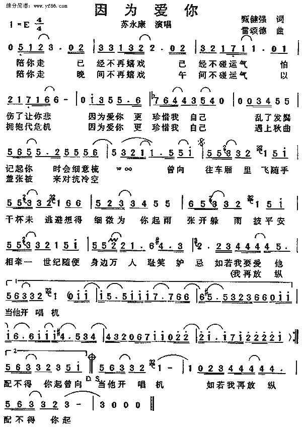 苏永康因为爱你(更珍惜我自己) 曲:雷颂德词:甄健强编:雷颂德 陪你走已经不再嬉戏 已经不碰运气怕伤了让你悲 因为爱你更珍惜我自己 乱了发鬓记起你自会细意梳理 woo 曾向往车厢里飞随手乾杯未逃避 想得细微为你起雨伞张开挡雨披 平安相牵一世纪随便身边万人耻笑妒忌 如若我要爱你当他开唱机 陪你走晚间不再嬉戏 时间不碰运气以拥抱代危机 因为爱你更珍惜我自己 遇上秋风盖张被来对抗冷空气 woo 曾向往车厢里飞随手乾杯未逃避 想得细微为你起雨伞张开挡雨披 平安相牵一世纪随便身边万人耻笑妒忌 如若我再放纵配不得你起 |