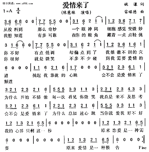 从没料到那么奇妙一个眼神间细胞感觉变微妙 你不好有点低调却偏偏点到了我桀傲不逊的穴道 挑起我想靠陇的心跳(这完全出乎我意料) 会不会是爱情来了为甚么开始不骄傲每一次看见你微笑 我总是来不及思考会不会是爱情来了为甚么总加速心跳 当你说爱我好不好我的世界只剩这一秒 i wonna take you by surprise forever原来恋爱是一种需要 i wonna take you by surprise forever原来爱情是一种预告 (爱情来了)我想知道有多可靠在你的眼角藏着一点点轻挑 你很好就是微笑不多不少碰到我需要爱情的频道 挑起我想靠陇的心跳(这完全出乎我意料) 会不会是爱情来了为甚么开始不骄傲每一次看见你微笑 我总是来不及思考会不会是爱情来了为甚么总加速心跳 当你说爱我好不好我的世界只剩这一秒 原来恋爱是一种需要 原来爱情是一种预告 挑起我想靠陇的心跳(这完全出乎我意料) 会不会是爱情来了为甚么开始不骄傲每一次看见你微笑 我总是来不及思考会不会是爱情来了为甚么总加速心跳 当你说爱我好不好我的世界只剩这一秒 i wonna take you by surprise forever原来恋爱是一种需要 i wonna take you by surprise forever原来爱情是一种预告 |