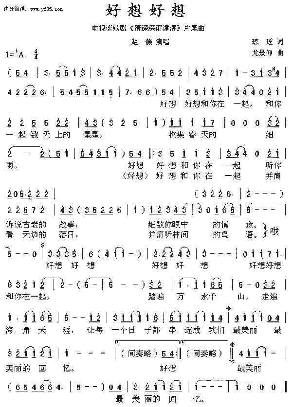 好想好想 好想好想和你在一起 和你一起数天上的星星 收集春天的细雨 好想好想和你在一起 听你诉说古老的故事 细数你眼中的情意 好想好想,好想好想 好想好想和你在一起 踏遍万水千山 走遍海角天涯 让每一个日子 都串连成我们最美丽 最美丽的回忆 music 好想好想和你在一起 并肩看天边的落日 并肩听林间的鸟语 好想好想,好想好想 好想好想和你在一起 踏遍万水千山 走遍海角天涯 让每一个日子 都串连成我们最美丽 最美丽的回忆 music 好想好想,好想好想 好想好想和你在一起 踏遍万水千山 走遍海角天涯 让每一个日子 都串连成我们最美丽 最美丽的回忆 回忆,回忆,回忆…… |