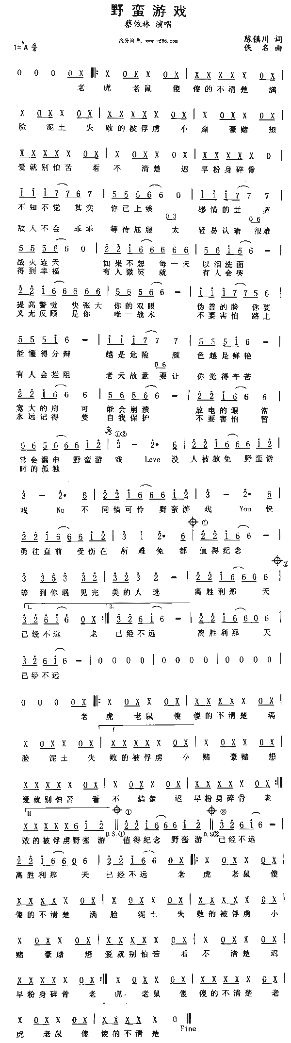 老虎老鼠傻傻分不清楚 满脸泥土失败的被俘虏 心豪赌想爱就别怕苦 看不清楚迟早粉身碎骨 不知不觉其实你已上线 感情的世界战火连天 如果不想每一天以泪洗面 提高警觉快张大你的双眼 伪善的脸你要能懂得分辨 越是危险颜色越是鲜艳 宽大的肩可能会崩溃 放电的眼常常会漏电 野蛮游戏 love 没人被赦免 野蛮游戏 no 不同情可怜 野蛮游戏 you 快勇往直前 受伤在所难免都值得纪念 等到你遇见完美的人选 离胜利那天已经不远 老虎老鼠傻傻分不清楚 满脸泥土失败的被俘虏 心豪赌想爱就别怕苦 看不清楚迟早粉身碎骨 敌人不会乖乖等着屈服 太轻易认输很难得到幸福 有人微笑就有人会哭 义无反顾是你唯一战术 不要害怕路上有人会拦阻 老天故意要让你觉得辛苦 永远记得要自我保护 不要害怕暂时的孤独 野蛮游戏 love 没人被赦免 野蛮游戏 no 不同情可怜 野蛮游戏 you 快勇往直前 受伤在所难免都值得纪念 等到你遇见完美的人选 离胜利那天已经不远 离胜利那天已经不远 希望大家一直支持依林,支持依林在线 www.jolinonline.com 老虎老鼠傻傻分不清楚 满脸泥土失败的被俘虏 心豪赌想爱就别怕苦 看不清楚迟早粉身碎骨 老虎老鼠傻傻分不清楚 满脸泥土失败的被俘虏 野蛮游戏 love 没人被赦免 野蛮游戏 no 不同情可怜 野蛮游戏 you 快勇往直前 受伤在所难免都值得纪念 野蛮游戏 love 没人被赦免 野蛮游戏 no 不同情可怜 野蛮游戏 you 快勇往直前 受伤在所难免都值得纪念 等到你遇见完美的人选 离胜利那天已经不远 离胜利那天已经不远 老虎老鼠傻傻分不清楚 满脸泥土失败的被俘虏 心豪赌想爱就别怕苦 看不清楚迟早粉身碎骨 老虎老鼠傻傻分不清楚 满脸泥土失败的被俘虏 心豪赌想爱就别怕苦 看不清楚迟早粉身碎骨 老虎老鼠傻傻分不清楚 老虎老鼠傻傻分不清楚 |