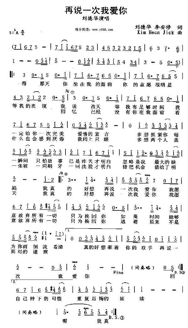 词:刘德华 李安修曲:kim heon jick 记得那天你坐在我的面前 你的意愿很明显等我的表现 我说改天等我有足够时间 我一定给你一次完美爱情的宣言 多想抓紧每一瞬间 只怕故事已是昨天 才明白忽略是我最大的缺陷 我真的好想再说一次我爱你 我愿意放弃所有一切只为换回你 如果时间能够为你而倒流 真的好想牵著你的双手再说一次我爱你 回忆已经没有你在我面前 看什黱也会感到厌倦我闭上双眼 多想两个人盖一张被 一同刷牙一同洗脸 才明白错把机会借给了明天 我真的好想再说一次我爱你 我愿意放弃所有一切只为换回你 逃避原来不是面对的道理 看清自己种下的可惜重复後悔的延续 喔我真的好想再说一次我爱你 我愿意放弃所有 |