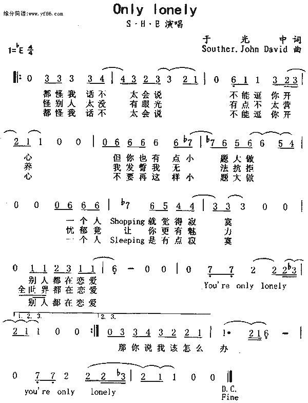 | only lonely dalalala…. 说的容易才不容易 说的容易才不容易 dalalala…. dalalala…. 谁说容易我才容易 谁说容易我才容易 都怪我话不太会说 不能逗你开心 但你也有点小题大做 一个人shopping 就觉得寂寞 别人都在恋爱 you''re only lonely 那你说我该怎么办 you''re only lonely 求求你 睁开眼睛 看看这个世界 又不是全部 都一对一对 我们 心地善良 又有品味 又没犯罪 又没偷窃 健康检查 完全ok 打开皮夹 ya卡又一堆 只不过是 没有人陪 太多人追又太会拒绝 何必因为 一点寂寞就要跟谁 道歉毁失礼 怪别人太没有眼光 有点不太营养 算了吧 我发誓我无法抗拒 忧郁竟让你更有魅力 全世界都在恋爱 you''re only lonely 那你说我该怎么办 you''re only lonely dalalala…. dalalala…. 说的容易才不容易 说的容易才不容易 dalalala…. dalalala…. 谁说容易我才容易 谁说容易我才容易 不要再说lonely 因为你是 one and only 打发时间 其实很easy 来一点嘻哈 让心情变得sunny 天天轰趴 流连网咖 会不会太crazy 打起精神 不要变lazy 我做你的 你做我的baby , yes my lady 都怪我话不太会说 不能逗你开心 不要再这样小题大做 一个人sleeping 是有点寂寞 别人都在恋爱 you''re only lonely 那你说我该怎么办 you''re only lonely 喔喔 这个世界 美丽世界 有点寂寞 才有点缀 花花世界 爱的世界 你的寂寞 总有边界 如果真的很sad 写个简讯请你按个sand 我保证立刻出现 把你臭骂一顿让你甘愿 让你甘愿 别再抱怨 别再抱怨 dalalala…. dalalala…. you''re only lonely 说的容易才不容易 dalalala…. 谁说容易我才容易 让心情变得easy only lonely dalalala…. 会不会太crazy 说的容易才不容易 dalalala…. 谁说容易我才容易 没有你在lonely dalalala…. |