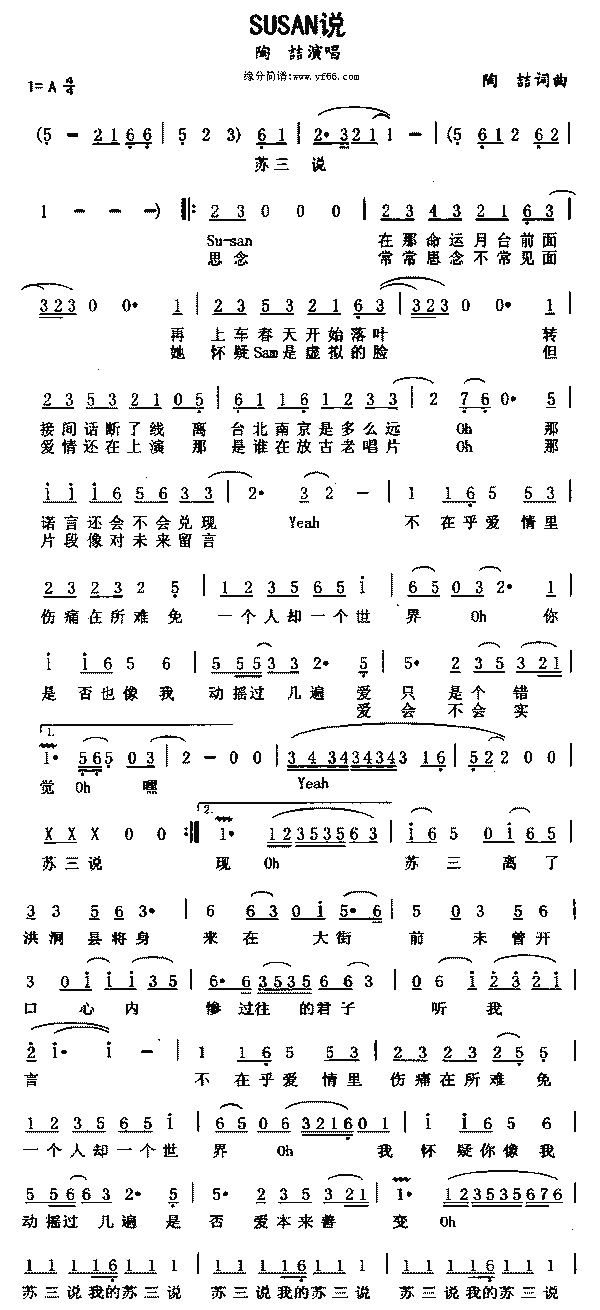 yeah 苏三说 susan 在那命运月台前面 再上车春天开始落叶 转接间话断了线 离台北南京是多么远 oh~ 那诺言还会不会兑现 yeah 思念~ 不在乎爱情里伤痛在所难免一个人却一个世界 oh~ 你是否也像我也动摇过几遍爱只是个错觉 oh yeah 苏三说 思念常常思念不常见面 她怀疑sam是虚拟的脸但爱情还在上演 那是谁在放古老唱片 那片段像对未来留言 yeah 思念~ 不在乎爱情里伤痛在所难免一个人却一个世界 oh~ 你是否也像我也动摇过几遍爱会不会实现 oh~ 「苏三离了洪桐县将身来在大街前未曾开言心惨淡过往的君子听我言」 (rap)苏三离了洪桐县挂了个牌子在那大街前被那凶恶群众包围稍微等一下 过往的君子请你听我言哪一位去往南京转与我那三郎把信转就说苏三把命断 来生变一只狗一只马我当报还 come on 不在乎爱情里伤痛在所难免一个人却一个世界 oh~ 我怀疑你像我动摇过几遍是否爱本来嬗变 oh~ 苏三说我的苏三说苏三说我的苏三说苏三说我的苏三说苏三说我的苏三说 |