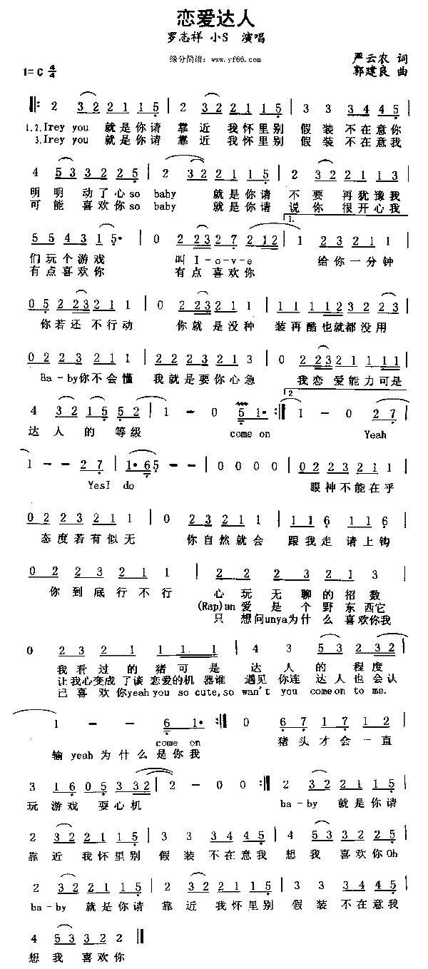 hey you 就是你请靠近我怀里别假装不在意你明明动了心 so baby 就是你请不要再犹豫我们玩个游戏叫 l-o-v-e (girl)给你一分钟你若还不行动你就是没种装再酷也就都没用 (boy)宝贝你不会懂我就是要你心急我恋爱能力可是达人的等级 come on hey you 就是你请靠近我怀里别假装不在意你明明动了心 so baby 就是你请不要再犹豫我们玩个游戏叫 l-o-v-e yah~let''s be cool~ (boy)眼神不能在乎态度若有似无你自然就会跟我走(baby)请上钩 (girl)你到底行不行尽玩无聊的招数我看过的猪可是达人的程度 come on hey you 就是你请靠近我怀里别假装不在意我可能喜欢你 so baby 就是你请说你很开心我有点喜欢你有点喜欢你 (rap) un...爱是个野东西它让我的心变成了谈恋爱的机器谁遇见你 连达人也会认输 yeah~为什么是你我只想问 un...ya...为什么喜欢你 (boy)我已喜欢你 yeah... (girl) you so cute...so wan''t you come to me猪头才会一直玩游戏耍心机 baby 就是你请靠近我怀里别假装不在意我想我喜欢你 so baby 就是你请说你也愿意我一直喜欢你一直喜欢你 (rap)恋爱达人的终点就是追到你没有规则这游戏永远继续 不用躲避因为没有输赢 yah yah*2 baby 就是你请靠近我怀里别假装不在意我想我喜欢你 so baby 就是你请说你也愿意我非常喜欢你 yah~ 非常喜欢你 yes i do~ yes i do∏常喜欢你 |