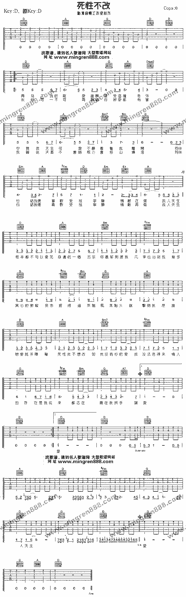 死性不改吉他谱 作词:陈少琪作曲:潘协庆 李姚 刚分手苦了自己 扬言男性我要避 才刚吸干眼泪挥出的蒸气 仍想呼吸相恋气味 这颗心总也未死 仍沉迷玫瑰扑鼻 才刚相识你甚么都多优美 如无人迷人能及你 越怕偏越爱错误又来 越错偏越爱痛也懒挡开 越痛偏越爱性格是从来未改 每段情花光数载 越怕偏越爱错误又来 越错偏越爱痛也懒挡开 越痛偏越爱那结局从来未改 每段情要未来却未来竟敢再爱 越怕偏越爱越错偏越爱 越痛偏越爱每段情花光数载 越怕偏越爱错误又来 越错偏越爱痛也扑火海 越痛偏越爱那结局从来未改 每段情要未来却未来竟敢再爱 |