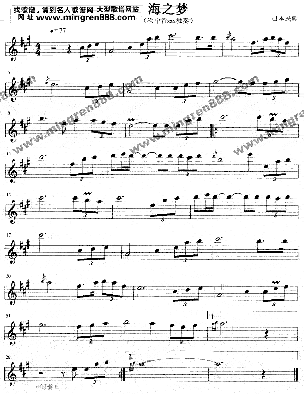 海之梦-日本民歌-萨克斯谱