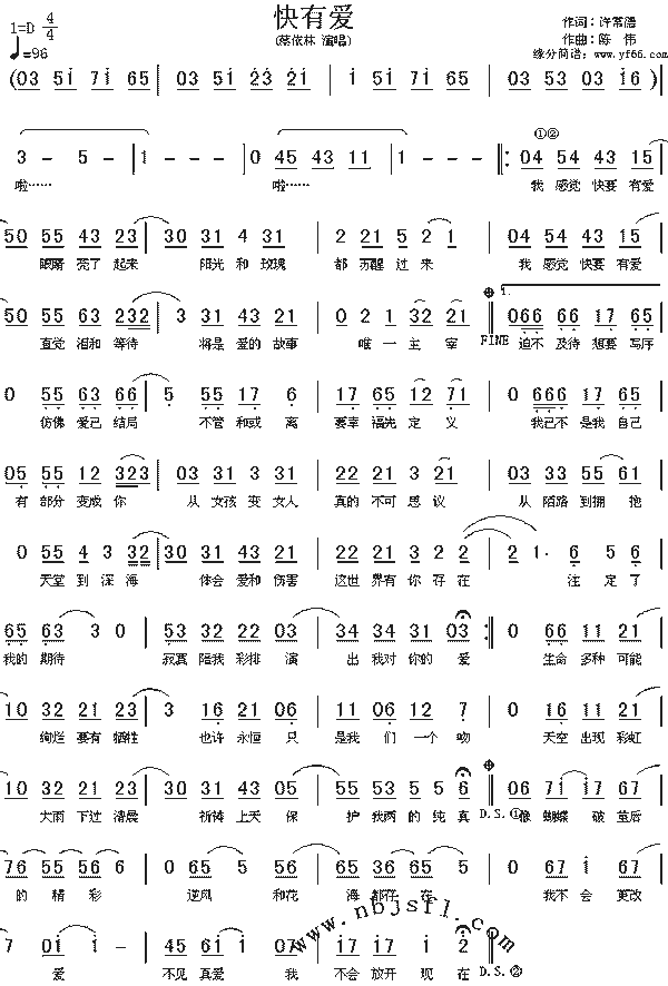 作词:许常德作曲:陈伟 我感觉快有爱 眼睛亮了起来 阳光和玫瑰都苏醒过来 我感觉快有爱 直觉泪和等待 将是爱的故事唯一主宰 迫不及待想要写序 彷佛爱已结局 不管合或离 要幸福先定义 我已不是我自己 有部分变成你 从女孩变女人 真的不可思议 从陌路到拥抱 天堂到深海 体会爱和伤害 这世界有你存在 注定了我的期待 寂寞陪我彩排 演出我对你的爱 循烂要有牺牲 也许永恒是你的一个吻 天空出现彩虹 大雨下过清晨 祈祷上天 保护我俩的纯真 像蝴蝶破茧后的精采 逆风和花海都存在 我不会更改爱 不见真爱 我不会放开现在 |