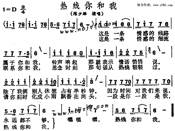 热线你和我词 李寿全曲 李寿全 这是一条情感的线路属於你和我 铃声响起那就表示情话俏俏说 除了我们别人休想占有半秒钟 因为时间对我们来说永远都不够 这是一条情感的细流联系你和我 思念时刻拿起话筒热线轻轻播拨 情意刹时化成笑语交响在两头 一端是你一端是我热线你和我 哈....热线你和我 哈....热线你和我 哈....热线你和我 哈....热线你和我 (music) 这是一条情感的线路属於你和我 铃声响起那就表示情话俏俏说 除了我们别人休想占有半秒钟 因为时间对我们来说永远都不够 这是一条情感的细流联系你和我 思念时刻拿起话筒热线轻轻播拨 情意刹时化成笑语交响在两头 一端是你一端是我热线你和我 哈....热线你和我 哈....热线你和我 哈....热线你和我 哈....热线你和我 哈....热线你和我 哈....热线你和我 哈....热线你和我 哈....热线你和我 |
