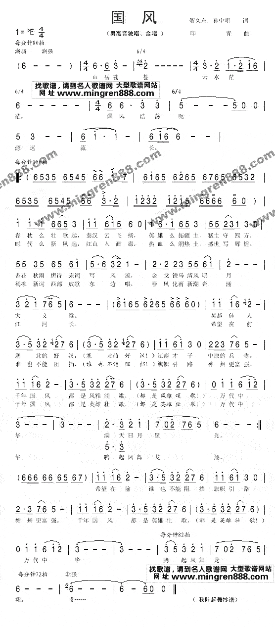 山岳苍苍,云水茫茫,国风浩荡呃源远流长。 春秋么壮歌起,秦汉云飞扬,英雄么拓疆土,猛士守四方。性花秋雨唐诗宋词写风流,金戈铁马清风明月大文章。吴越佳人、塞北的好汉,江南才子、中原的兵将。千年国风都是风雅颂歌,万代中华满天日月星光。 时代么新风起,江山入画廊,热血么润热土,盛世写辉煌。杨柳新词西部放歌东边唱,春风化雨新潮奔涌江河长。希望在前谁也不能阻挡,旗帜引路神州更富强。千年国风都是英雄壮歌,万代中华腾起凤舞龙翔。 哎……