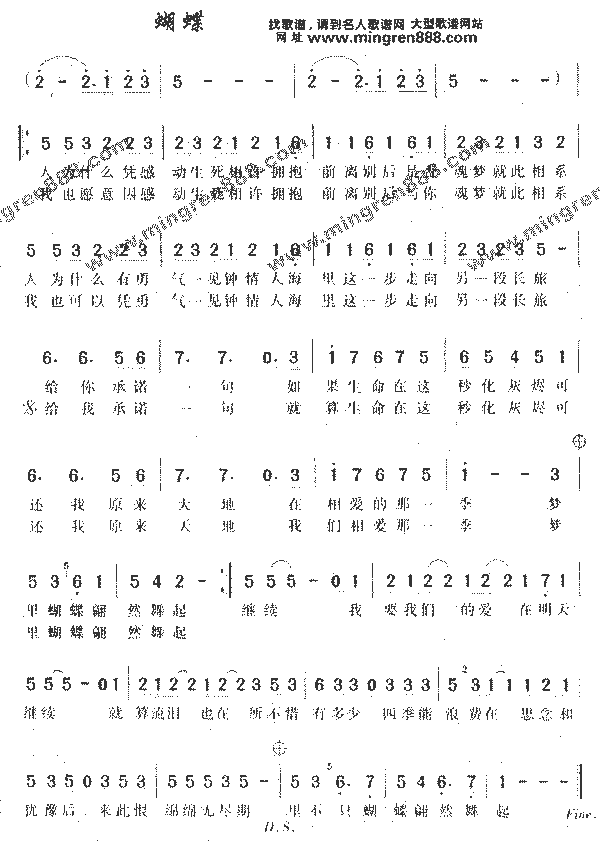 人为什么凭感动生死相许 拥抱前离别后是否魂梦就此相系 人为什么有勇气一见钟情 人海里这一步走向另一段长旅 给你承诺一句如果生命在这秒化灰烬 可还我原来天地在相爱的那一季 梦里蝴蝶翩然舞起 我也愿意因感动生死相许 拥抱前离别后与你魂梦就此相系 我也可以凭勇气一见钟情 人海里这一步走向另一段长旅 给我承诺一句就算生命在这秒化灰烬 可还我原来天地我们相爱那一季 梦里蝴蝶翩然舞起 继续我要我们的爱在明天 继续就算流泪也在所不惜 有多少四季能浪费在 思念和犹豫后来此恨绵绵无尽期 给我承诺一句就算生命在这秒化灰烬 可还我原来天地我们相爱那一季 梦里不只蝴蝶翩然舞起 |