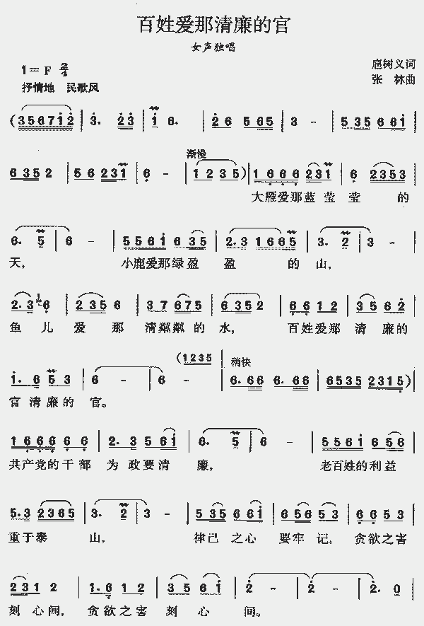 品书香 > > 曲谱网 >> 简谱曲谱 >> 歌曲简谱 >> 廉政歌曲