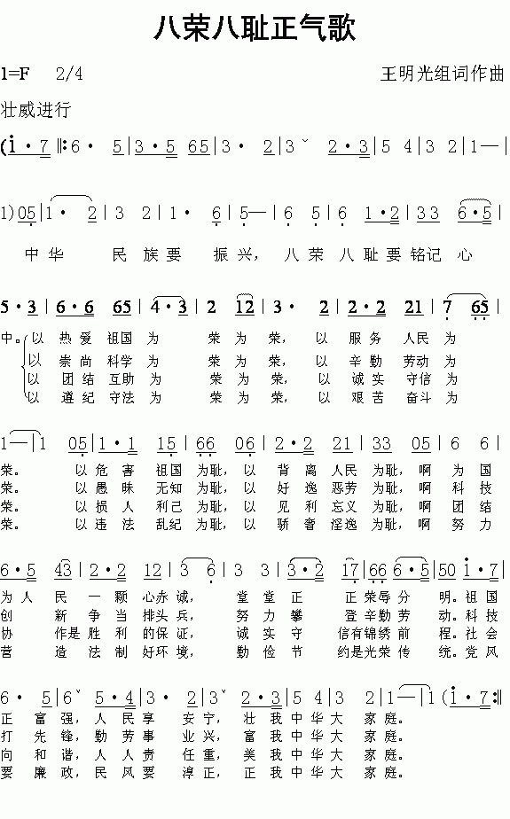 八荣八耻正气歌