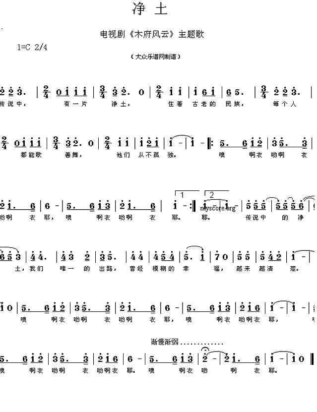 2013年春节联欢晚会歌曲系列之-孙楠《净土》简谱!这是一首充满民族风的歌曲,是《木府风云》的主题曲。