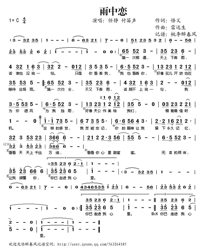 歌曲《雨中恋》是知名夫妻档歌手付笛生和任静于2012年最新推出的单曲,此曲由从温情舒缓渐渐变为轻快高昂,充盈着爱人之间的心灵共鸣!