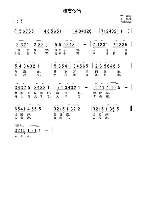 《难忘今宵》歌曲简谱简介