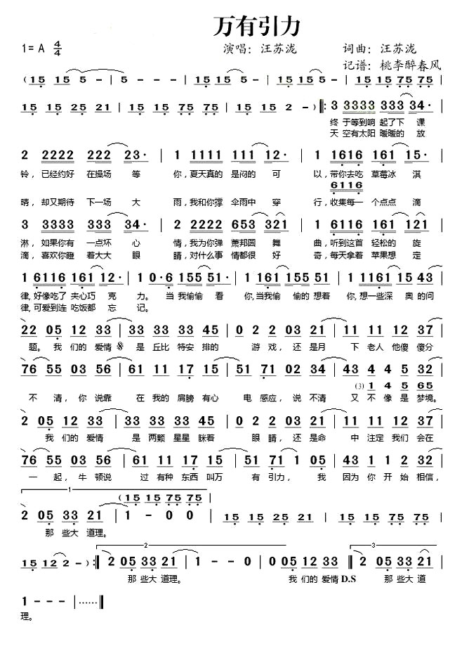 《万有引力》歌曲简谱简介