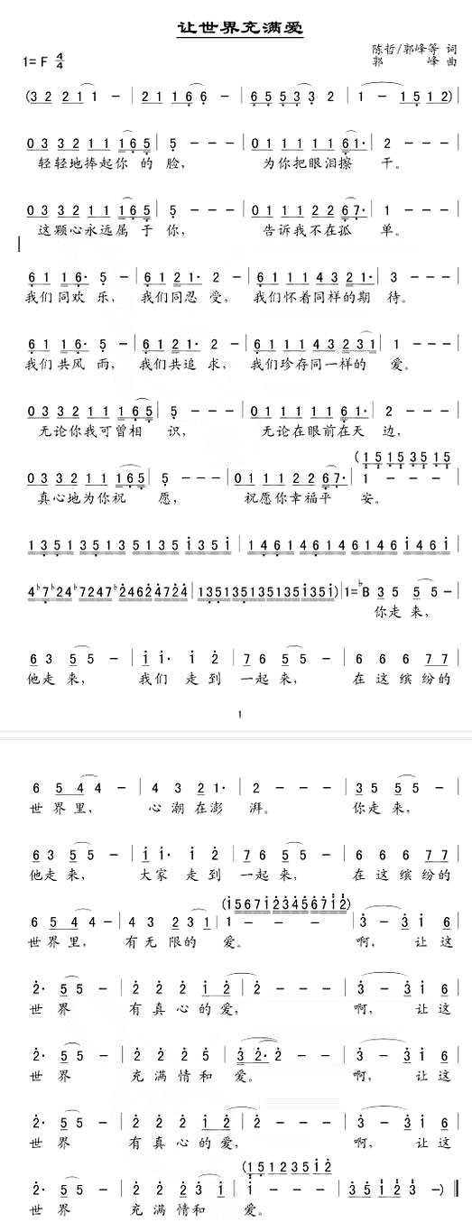 《让世界充满爱》于1986年由百位群星共同演唱,这首歌曲是一首经典的合唱曲目,由陈哲填词,郭峰作曲,由我国著名摇滚歌手崔健领唱,这首歌曲录音之后不久,便在文化部门的支持下举办了一场《让世界充满爱》大型音乐会。