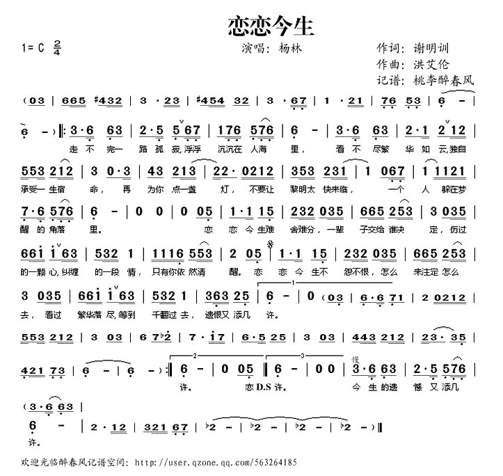 杨林演唱歌曲《恋恋今生》歌曲简谱,此曲由谢明训填词,洪艾伦作曲。