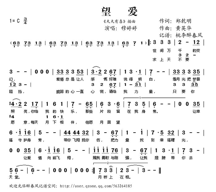 《天天有喜》插曲《望爱》歌曲简谱,此曲由穆婷婷演唱。