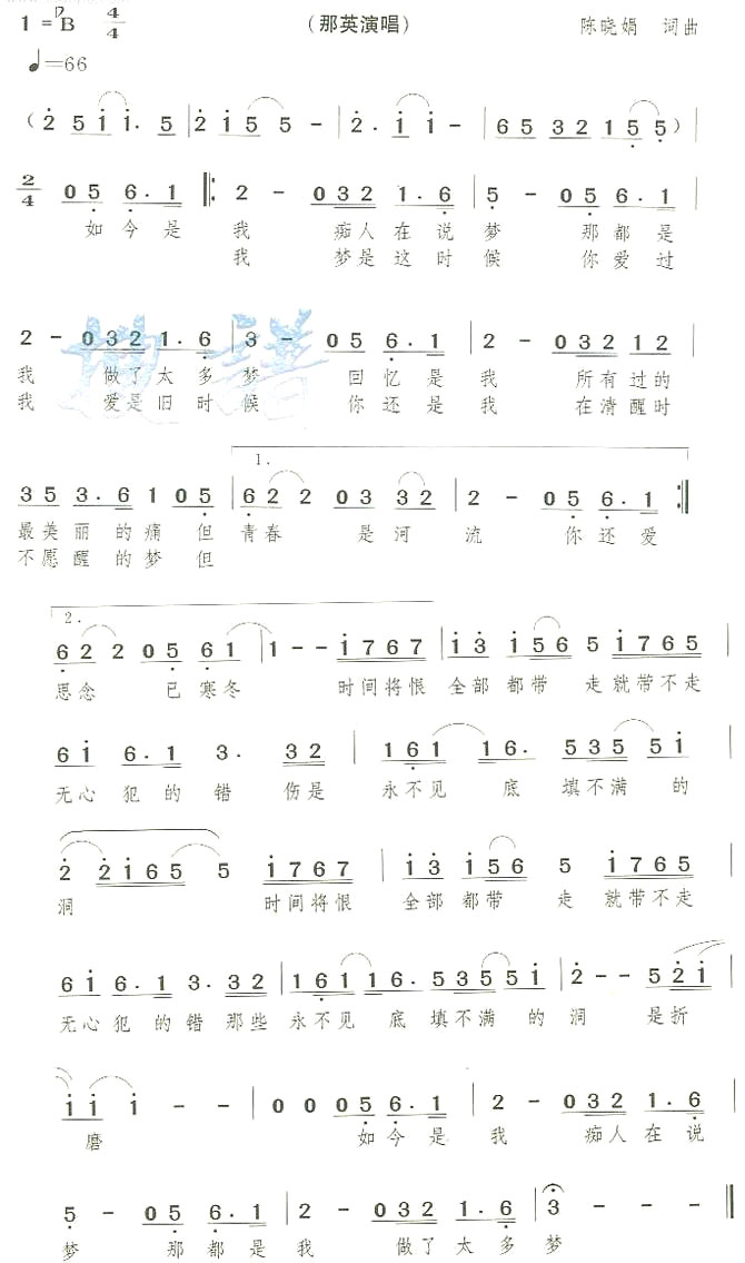 那英演唱歌曲系列之-《如今》歌曲简谱!