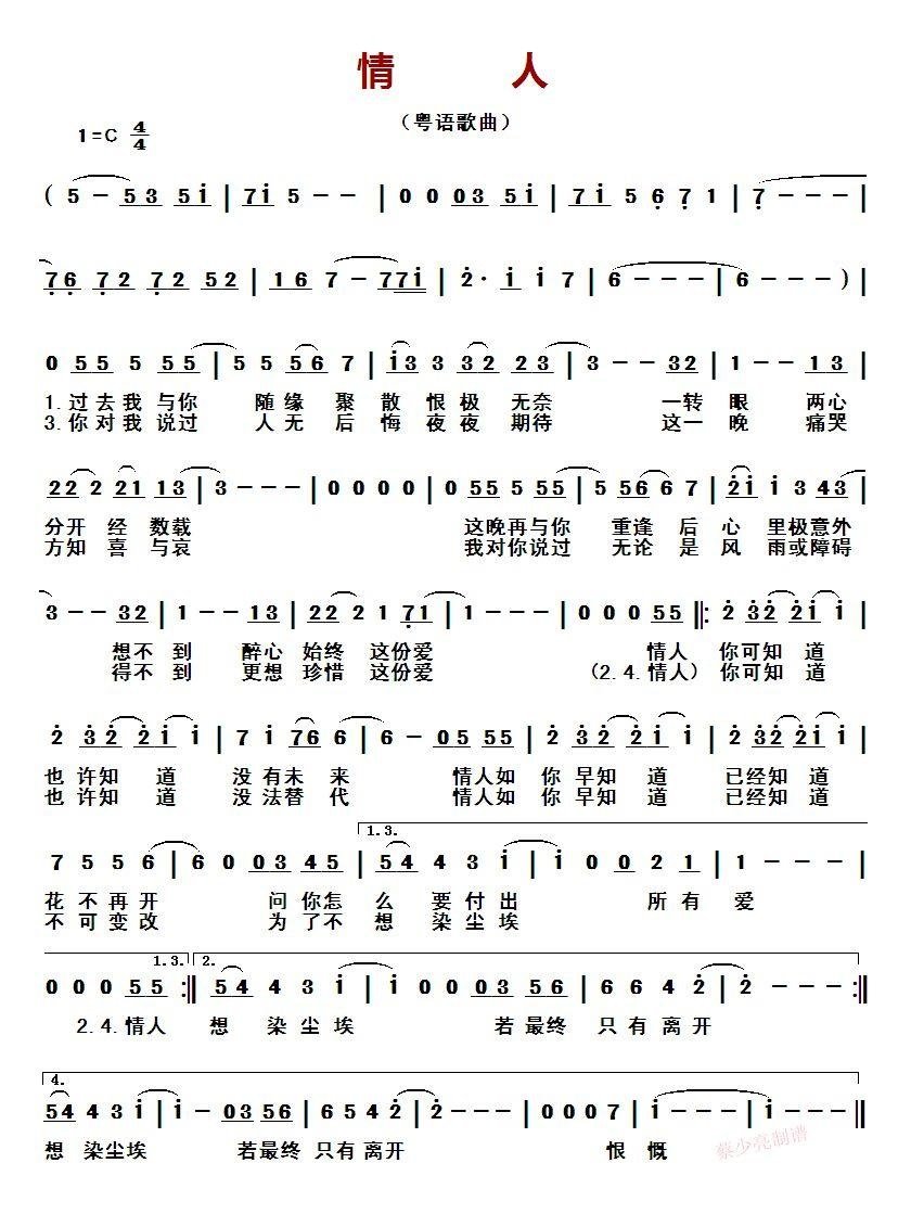 情人简谱: