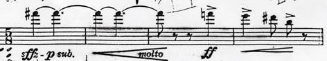 在演奏这样的吐音时,舌离开哨片不要过分向后拉,以免导致舌根紧张,影响气息运行与吐音速度。这个音节在吐音时可以增进动作的稳定性且动作简捷。所以这个音节应作为吐音的基本音节。