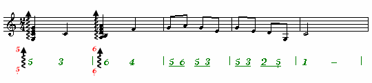 都是由和音下面的音往上依序吹出,记号表示如下: