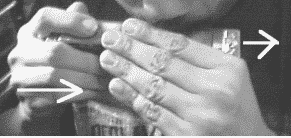 ※左手固定不动,并支撑著口琴,右手则左右推拉,制造两音急速交换出现的颤音效果。