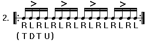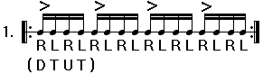 下面的练习是以16分音符为基础作变化的练习,括号内的备注为移动方法(参考小鼓首页)参考: