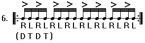 注意重音以外的打点需平稳一致。每个练习先独立的运用节拍器练熟把速度练快之后,再以排列组合的方式变换练习。